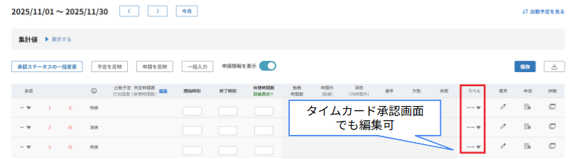 ・タイムカード承認でもラベルが修正可能になりました。