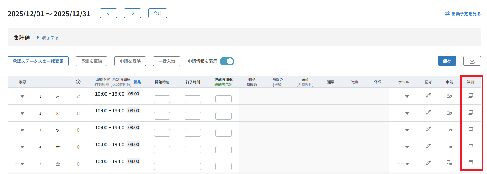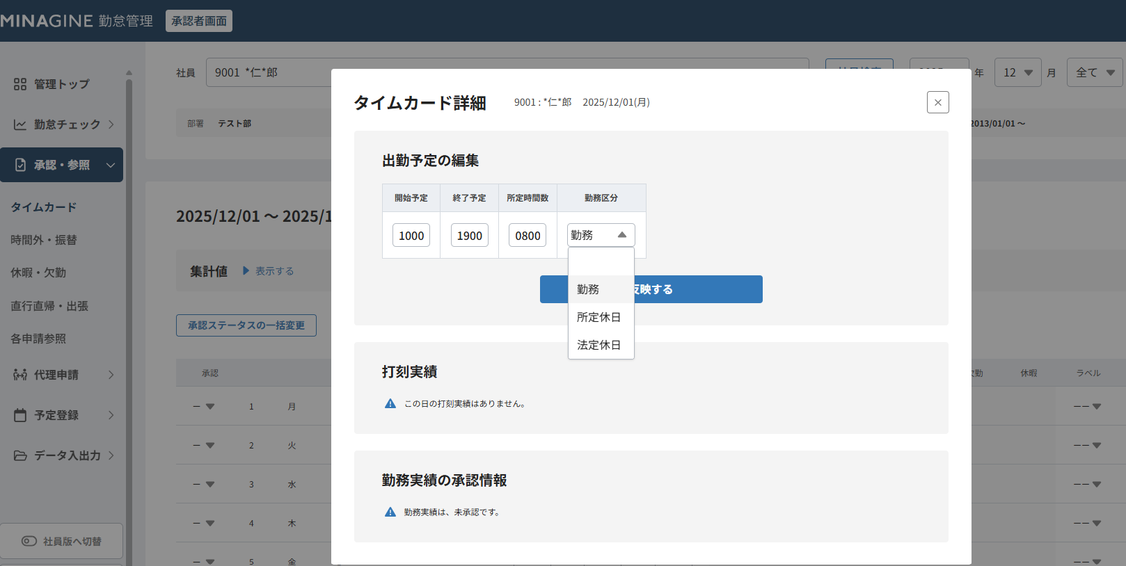 新UIでは詳細をクリックすることで出勤予定時間だけでなく、勤務ステータスも編集がすることが出来ます。