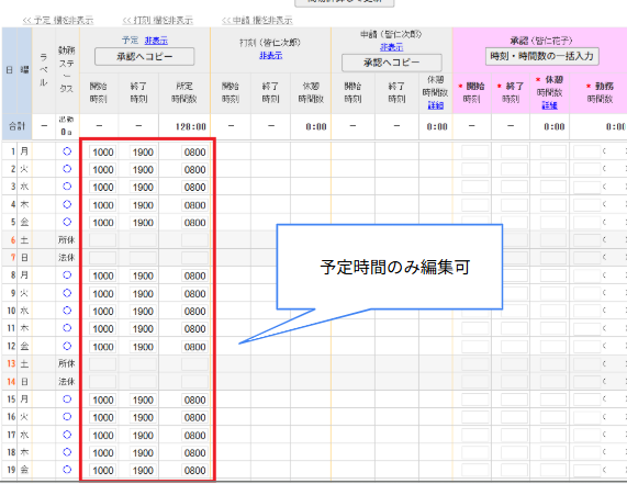 旧UIではタイムカード承認画面から出勤予定時間のみ編集することが出来ましたが