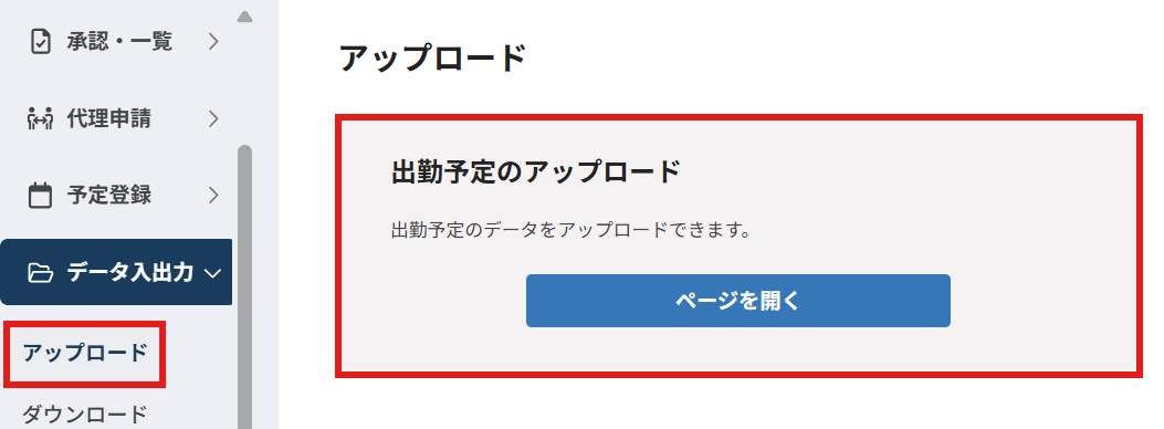 新UIからは「データの入出力」メニューよりまとめて表示されるように変更となりました。