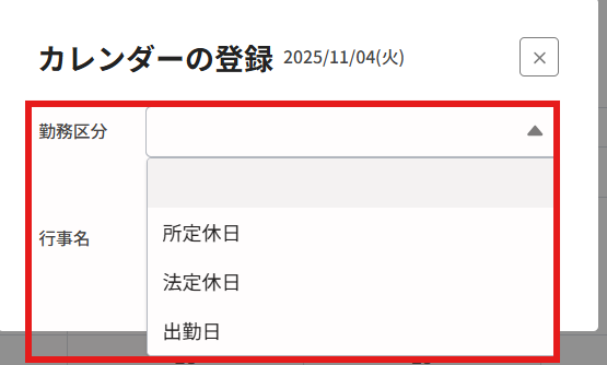 部署カレンダーでの勤務区分の変更方法に変更がありました。