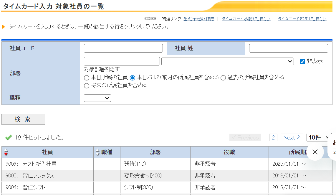③タイムカード入力画面の対象者表示(権限者操作時)