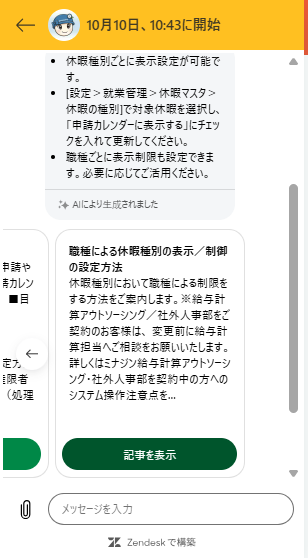 ③自動で回答文章と関連する記事が提示されます。