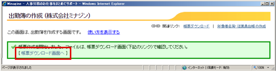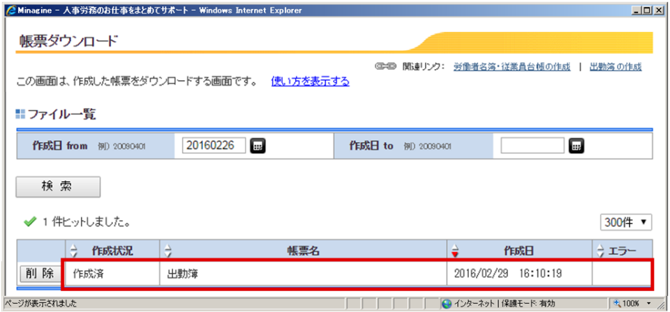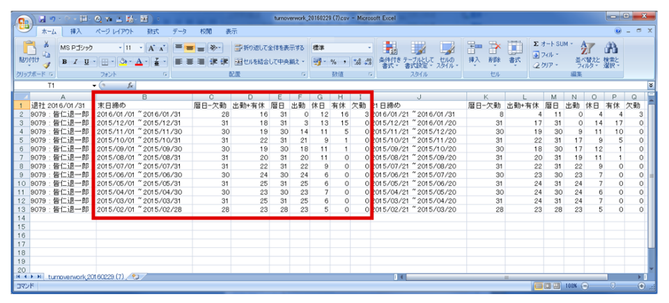 ⑤出勤簿データが出力されます。