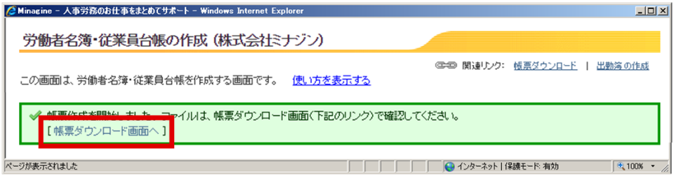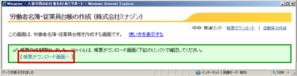 - 「従業員台帳作成」ボタンを押します。