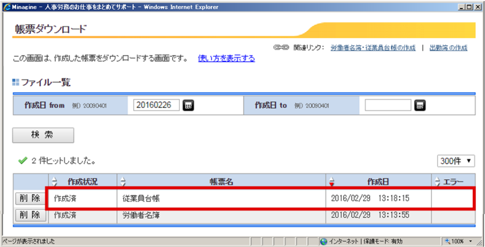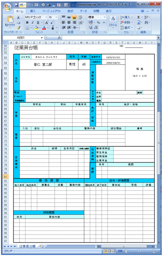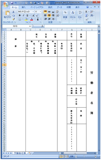 ⑤従業員台帳データが出力されます。